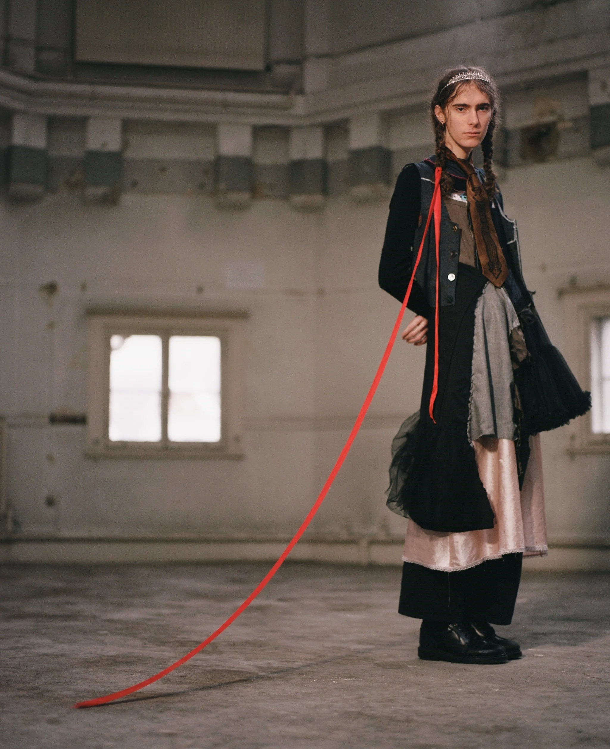 LVL1 in eerie and strange handmade tie and upcycled jacket shot by Meg Lavender styled by Mia Maxwell, 2021